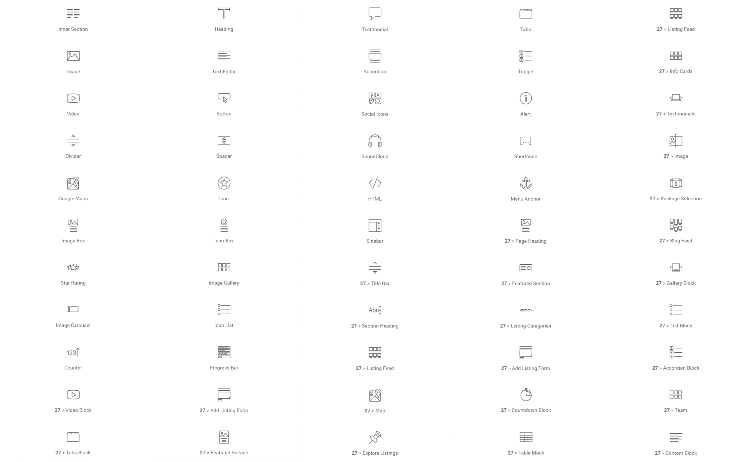 All elementor widgets